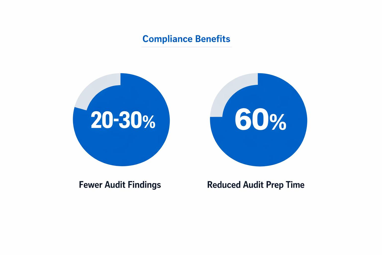 AI compliance monitoring helps organizations achieve 20–30% fewer audit findings and 60% reduction in audit preparation time. Two formulas help quantify risk reduction value: