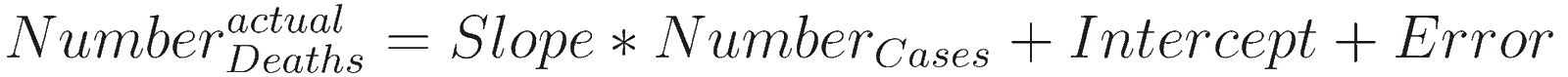 Assume, for the sake of illustration, that the dependent variable is the number of annual cases of cancer, avg_annual_deaths, and the independent variable is the number of cases, avg_annual_cases. The goal is to be able to express the number of deaths as a function of the number of cases: