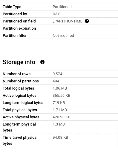 You can tell a table is partitioned on the BigQuery console either by looking at the icon, a banner in the table information, or a section in the table details