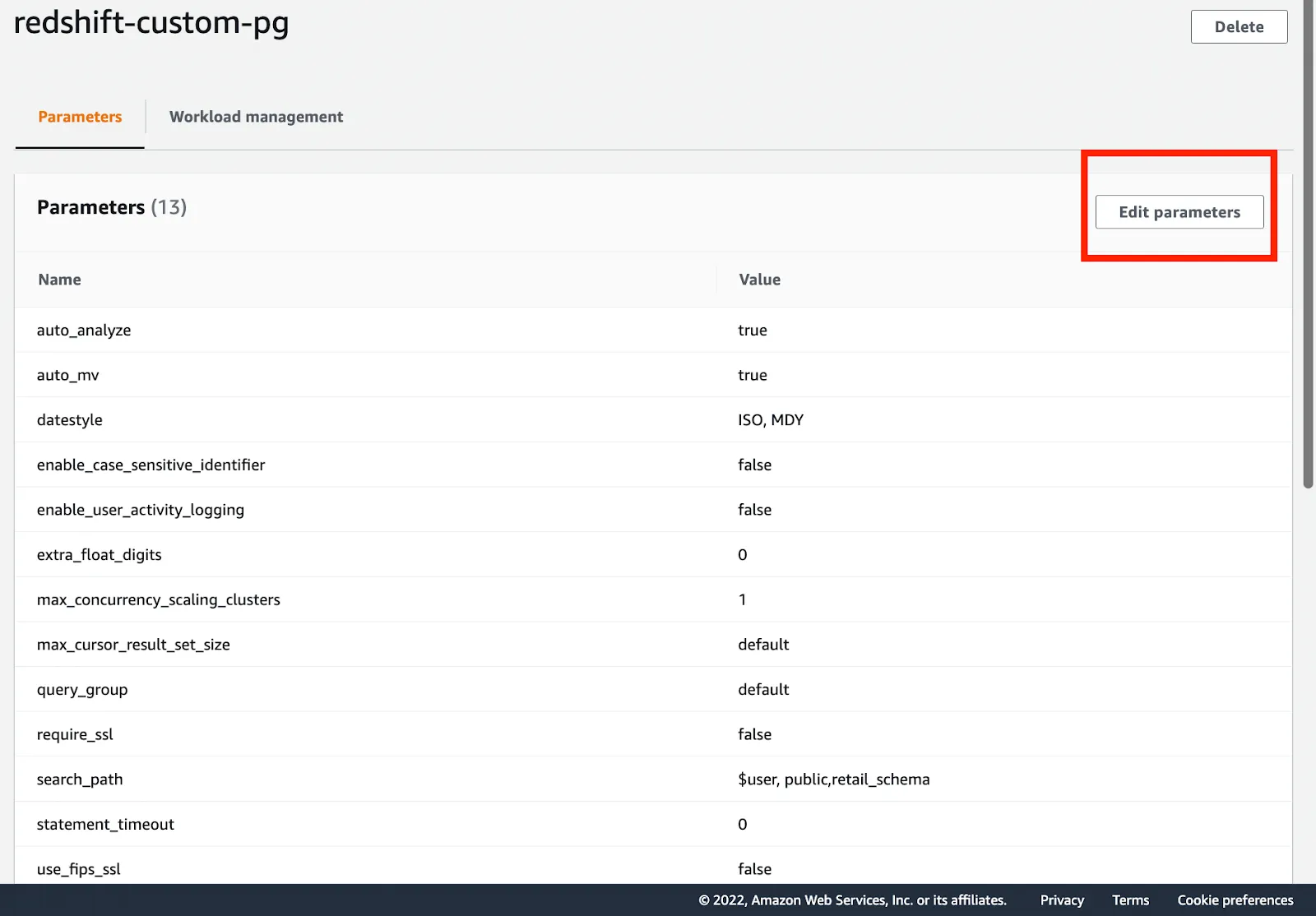 To configure auto-scaling, go to the Properties tab on your Redshift cluster. You then select your parameter group.