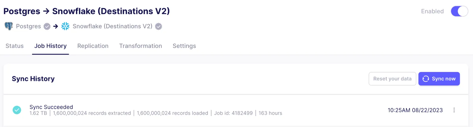 1. Reliable Large Table Initial Snapshots : Our connector can now replicate datasets of any size. We’ve reduced the reading of data into smaller sub-queries and improved syncs to be resumable after any failure, ensuring that syncs will always pick up where they left off should issues arise.