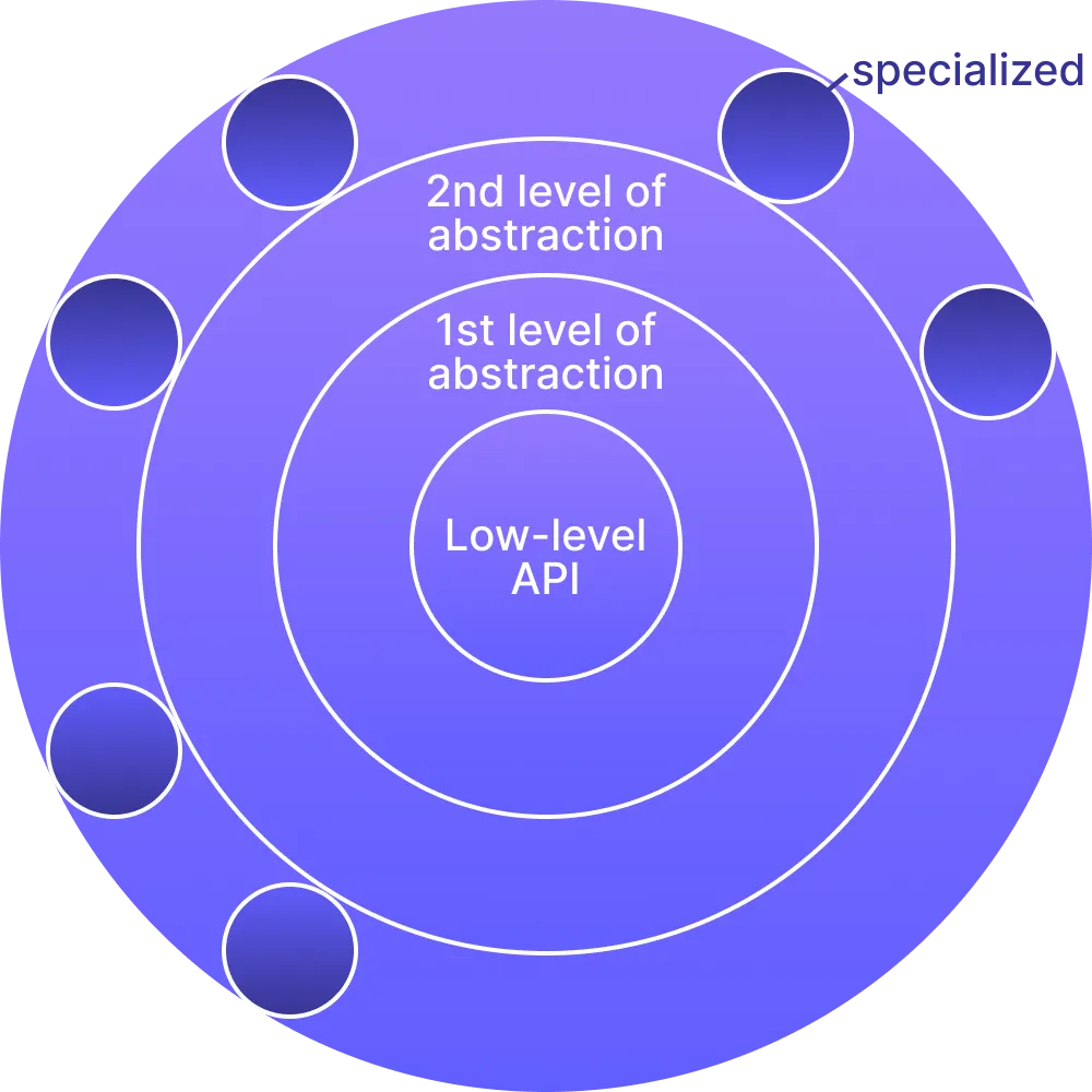 Abstractions as onion layers Maximizing high-leverage work leads you to build your architecture with an onion-esque structure:
