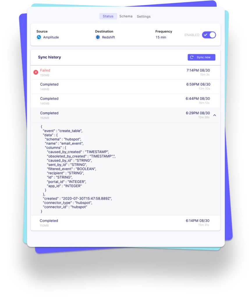 The intake layer of Datadog's self-serve analytics platform is largely built on Airbyte. Airbyte's ease of use and extensibility allowed any team in the company to push their data into the platform - without assistance from the data team!