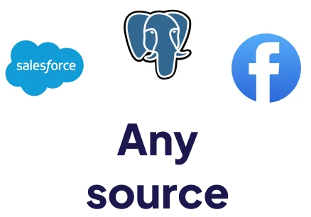 Choose from one of 400 sources where you want to import data from. This can be any API tool, cloud data warehouse, database, data lake, files, among other source types. You can even build your own source connector in minutes with our no-code no-code connector builder.
