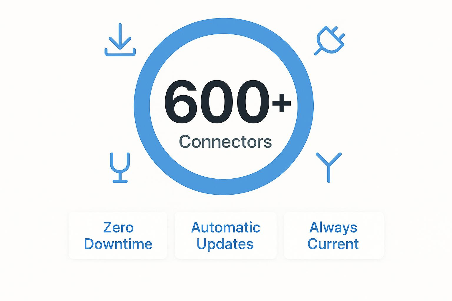Cloud control planes end the deployment dilemma: you stay current automatically while your data never leaves your environment. That means tighter security, predictable operations, and immediate access to every new connector without weekend maintenance marathons.