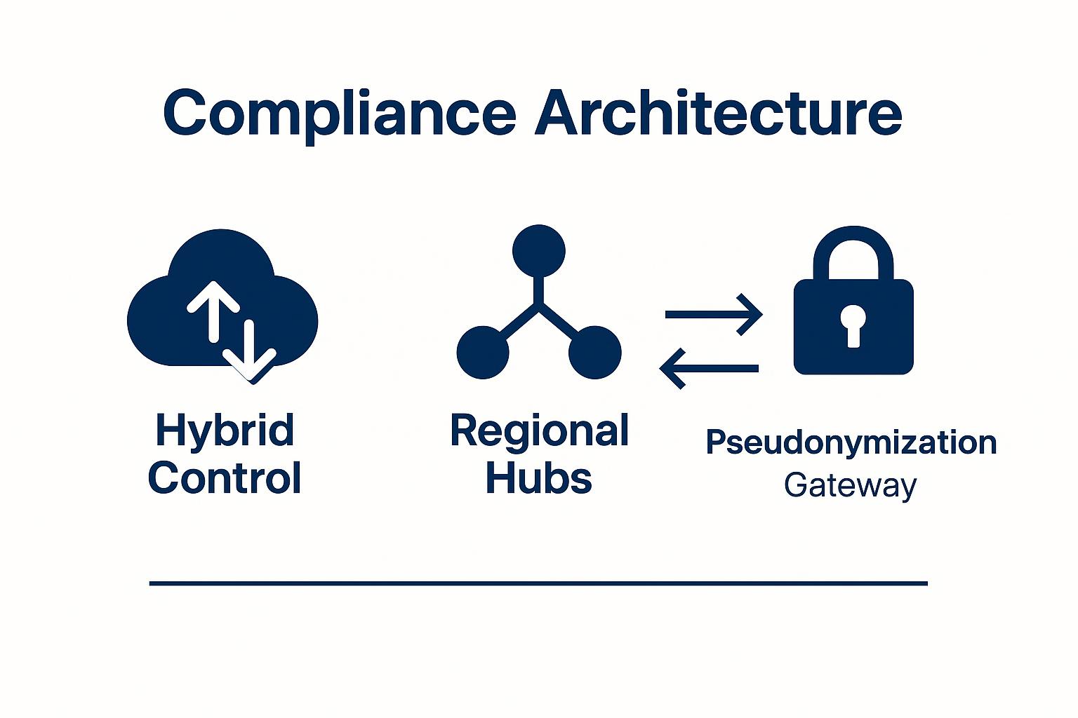 Three architecture patterns square this circle: a hybrid control plane with local data planes, regional data hubs, and a pseudonymization gateway. Together they preserve sovereignty, satisfy audit teams, and keep your pipelines fast.