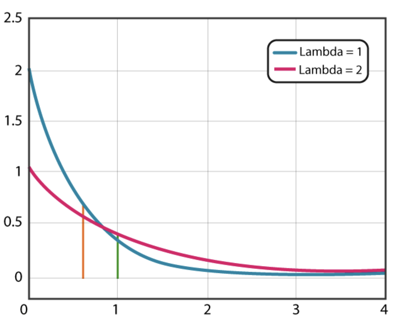 Models the time between events in a Poisson process and is notable for its memoryless property, making it fundamental for modeling inter-arrival times in message queues, failure intervals in distributed systems, and service time distributions in queuing theory applications. The memoryless property makes exponential distributions particularly valuable for modeling system failures and recovery procedures where past events don't influence future probabilities, supporting robust reliability engineering and automated failure recovery mechanisms.