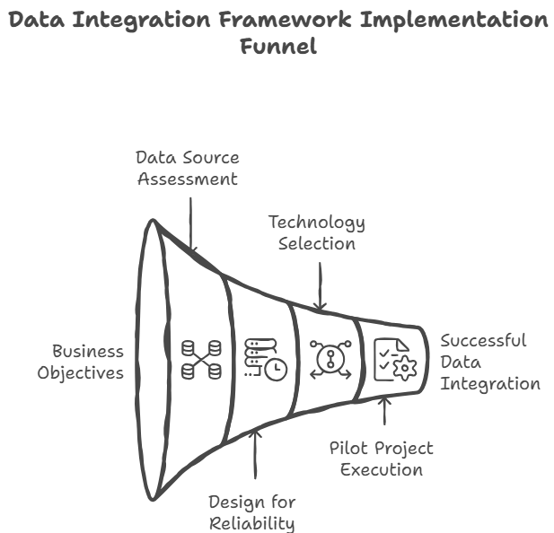 Building an effective data integration framework requires systematic planning and execution across multiple phases, ensuring alignment with business objectives while maintaining technical excellence and operational reliability.