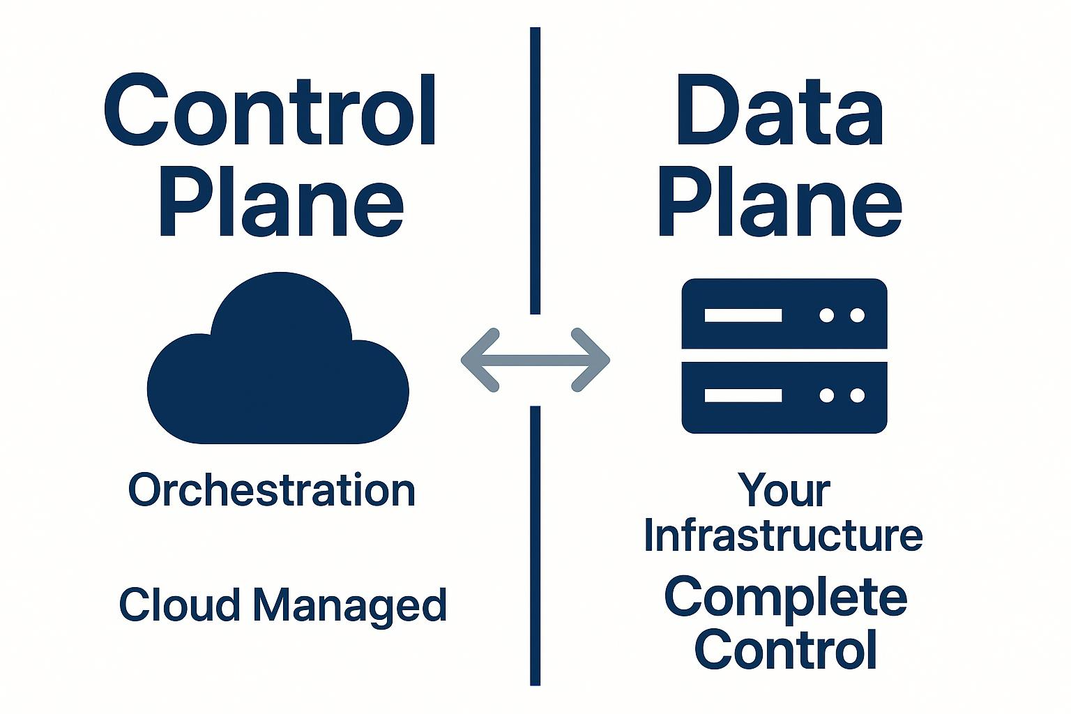 The control plane manages orchestration, job scheduling, and pipeline configuration from a centralized location. The data plane executes the actual data movement, transformations, and processing within your private infrastructure. This separation lets you maintain data sovereignty while benefiting from managed orchestration.