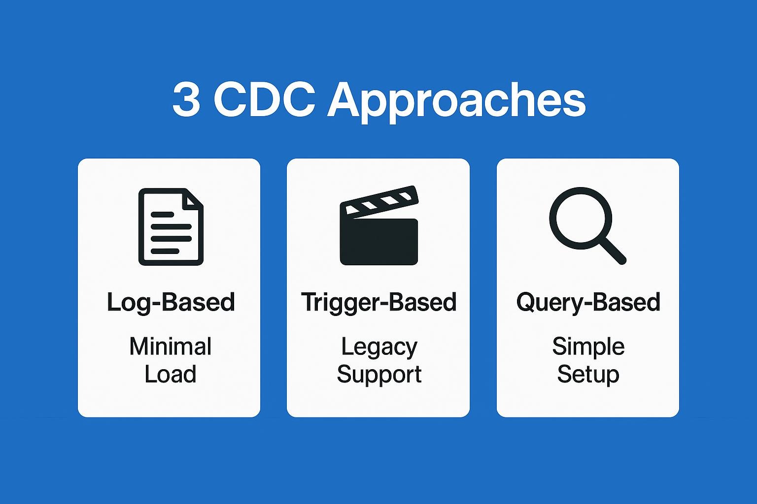 You have three practical ways to capture database changes before pushing them to Kafka. Each comes with trade-offs in performance, complexity, and database impact.