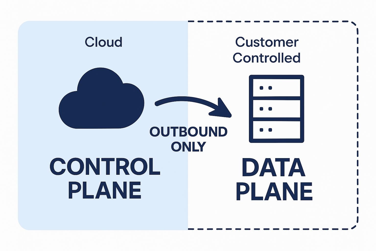 A hybrid architecture with a cloud control plane and customer-controlled data planes keeps compliance scope tight while enabling scale. Your card data stays where you control it; orchestration happens in the cloud.