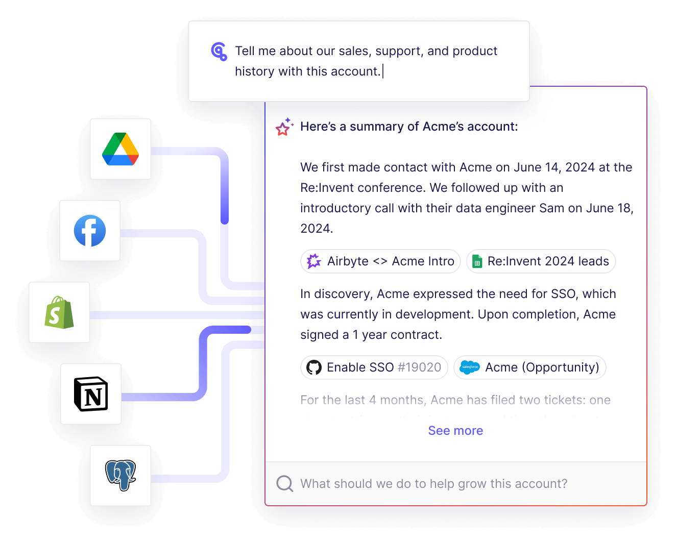 Accelerate your time to value and connect to your customer's most relevant APIs and databases in minutes with the Airbyte Embedded widget.