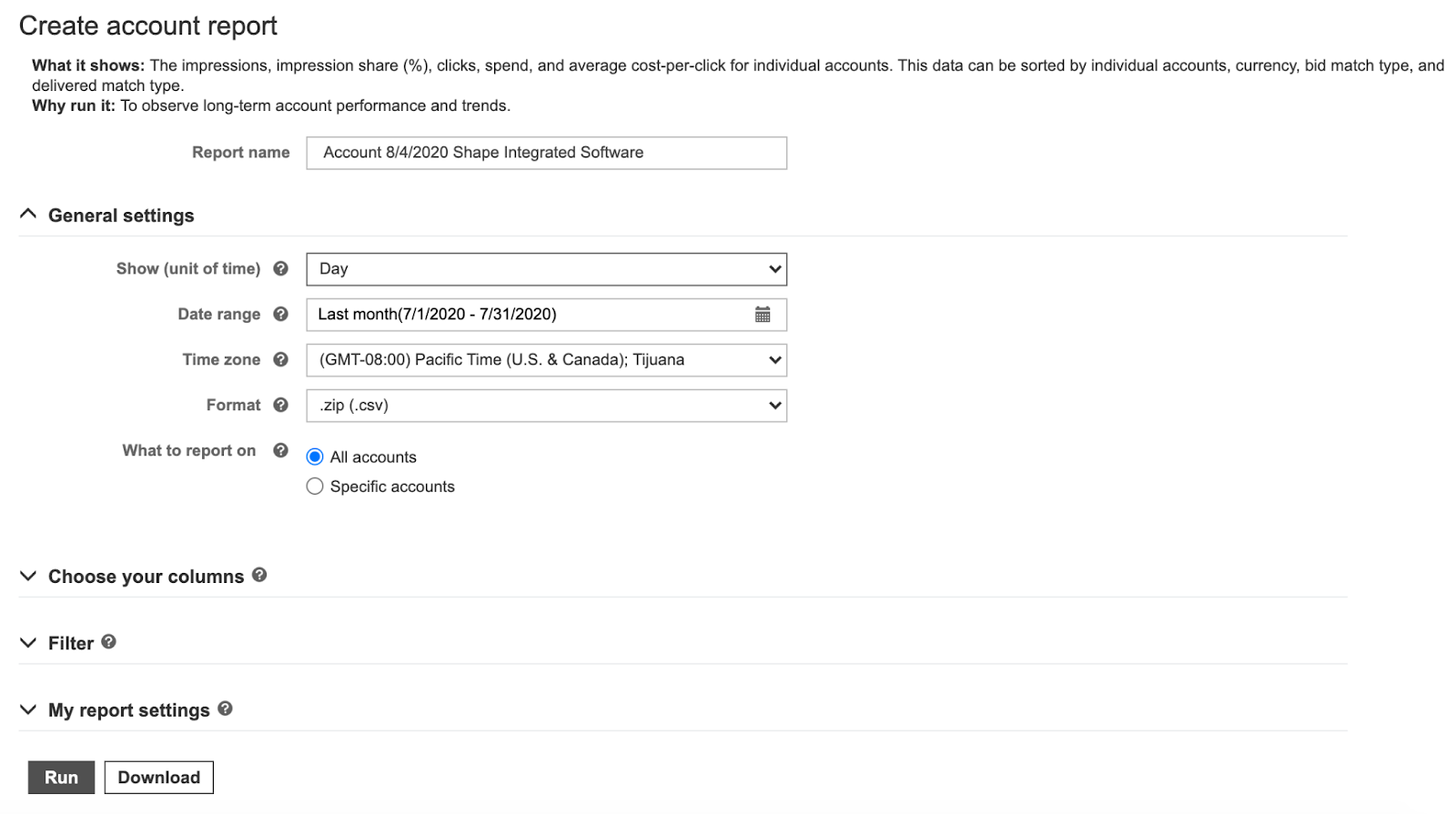 - Go to your Bing Ads account and navigate to the data you want to load in Google BigQuery.