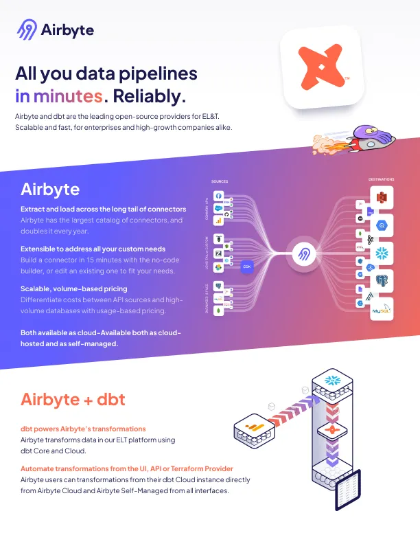 Here's a one-pager describing how Airbyte and dbt complement themselves and integrate together to address all your EL&T needs.