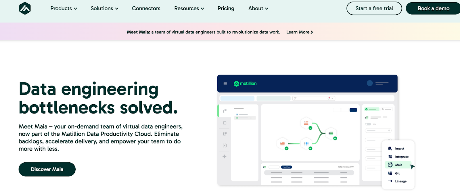 Matillion is a cloud-native ETL/ELT tool built for modern data platforms like Snowflake, BigQuery, and Redshift. It allows fast integration with a drag-and-drop UI while offering powerful transformation features for engineers.