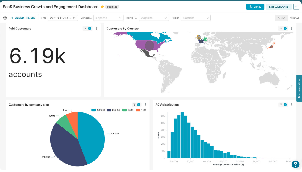 - Extensive Customization: The tool offers a high level of flexibility in terms of the appearance and functionality of the visualizations and dashboards, which can be adjusted to fit particular requirements. This includes the possibility to apply filters, queries, and other features that can be changed during the work with the table.