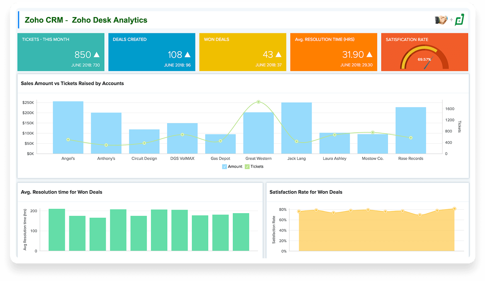 - Unified Business Insights: By combining data from several teams, like sales, marketing, finance, and support, Zoho Analytics enables you to unify your business data. It also provides easy connectivity, pre-built analytics, and smart data integration capabilities for a smooth study of the unified data with distinctive end-to-end insights.