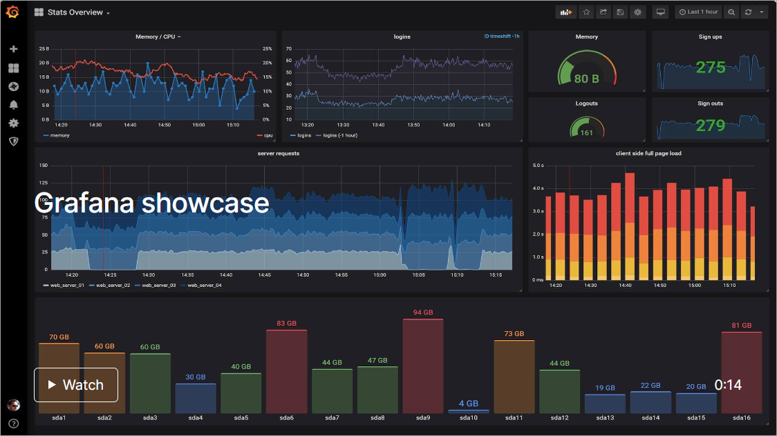 Grafana is a monitoring and observability platform that is developed as an open-source tool. It allows you to design, analyze, and collaborate on dashboards with your team, all in one place and visually integrated way. Grafana is a versatile tool for data analysis and visualization since it allows for monitoring metrics, logs, and traces.