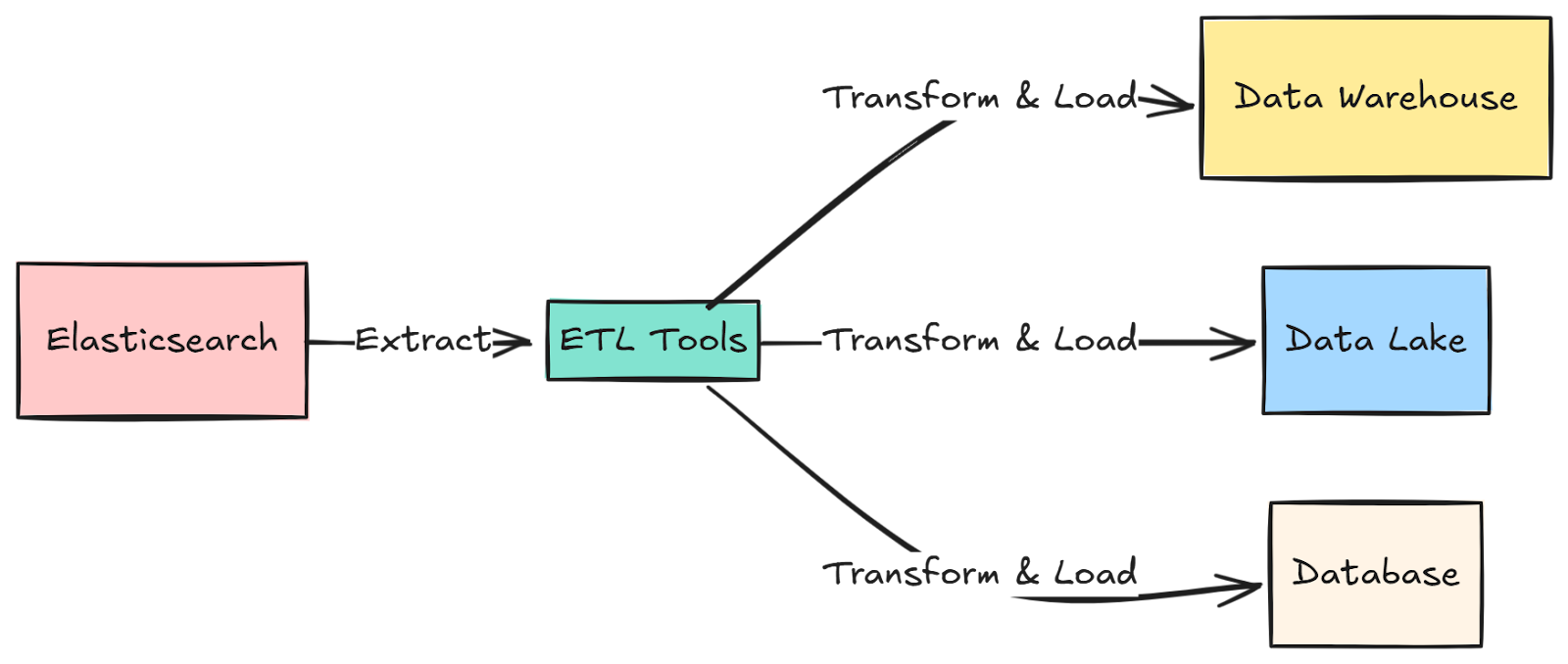 Elasticsearch ETL is the process of extracting data from Elasticsearch and loading it into different target systems like data warehouses, lakes, or databases. This process helps organizations centralize their data from Elasticsearch for analytics, reporting, or data consolidation purposes.