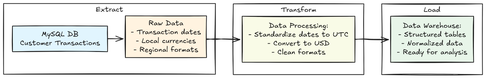 MySQL ETL is a process where data is extracted from MySQL databases, transformed into a suitable format, and loaded into a target system. It could be like extracting customer data from MySQL, converting currencies and dates to standardized formats, and loading it into a data warehouse.