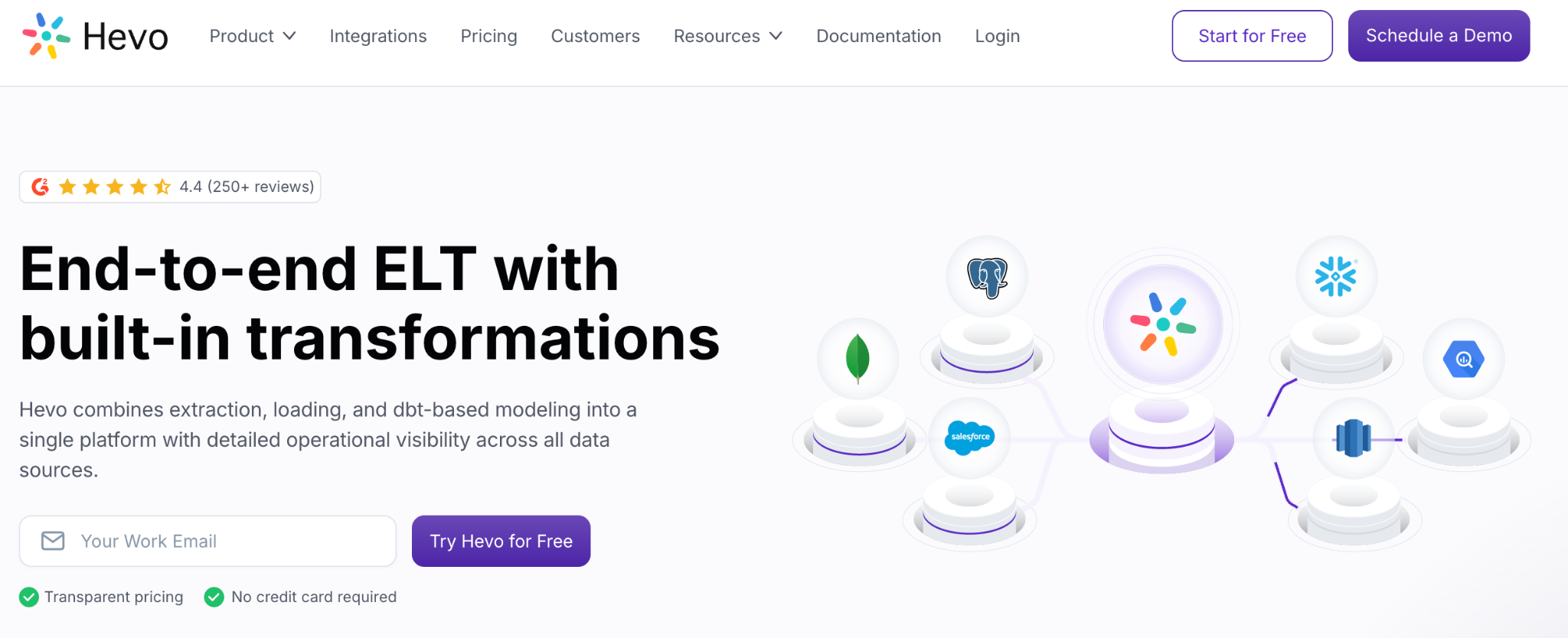 Hevo Data is a fully managed, no-code data pipeline platform designed to make data movement simple for non-technical users. It supports 150+ connectors across SaaS apps, databases, and cloud services, enabling real-time replication into modern data warehouses like Snowflake, BigQuery, and Redshift. Hevo’s intuitive UI allows users to set up pipelines without writing code, while built-in schema management automatically detects and adapts to changes in the source. Features like near real-time streaming, automatic retries, and monitoring dashboards make it especially valuable for fast-moving businesses that can’t afford downtime. Hevo also prioritizes simplicity in operations, reducing the burden of maintenance or engineering oversight. However, while great for quick ingestion, Hevo offers limited flexibility compared to open-source platforms and can become expensive as data volume scales.