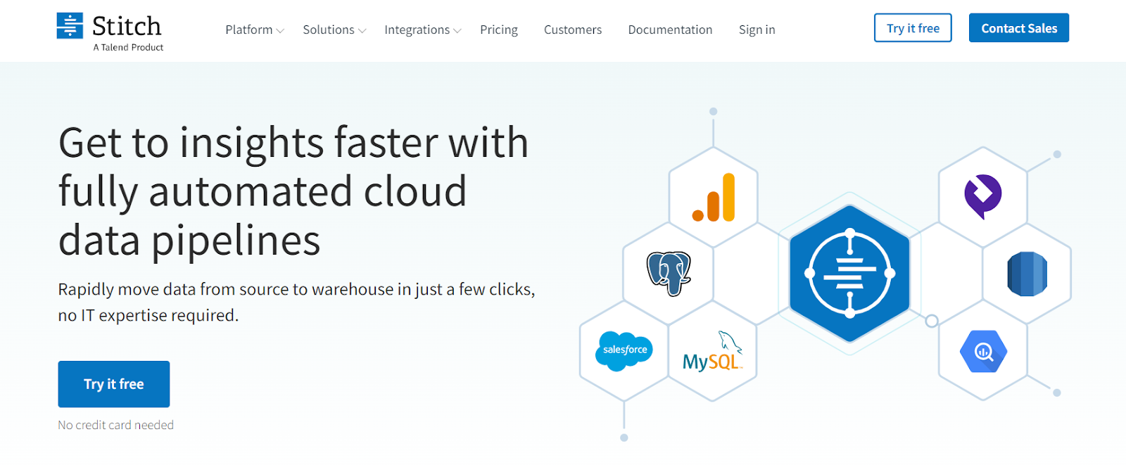 - As a part of the Talend ecosystem, Stitch seamlessly integrates with other Talend services, allowing you to leverage additional data management features as needed.