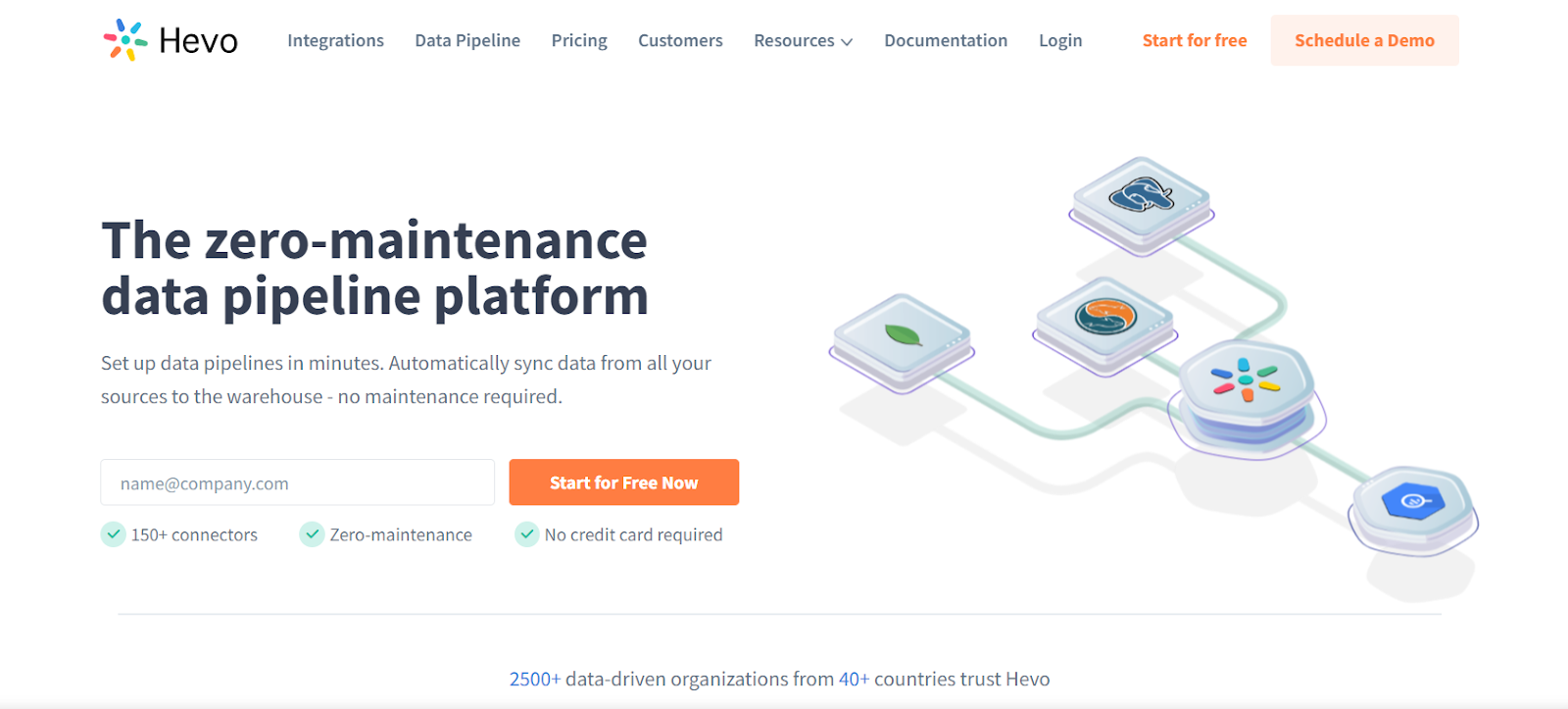 Hevo Data is a cloud-based data integration platform designed to simplify the process of collecting, transforming, and loading data from various sources into a data warehouse or destination of choice. With its extensive connectors, automation capabilities, and user-friendly interface, it allows you to streamline data integration workflows of all sizes.