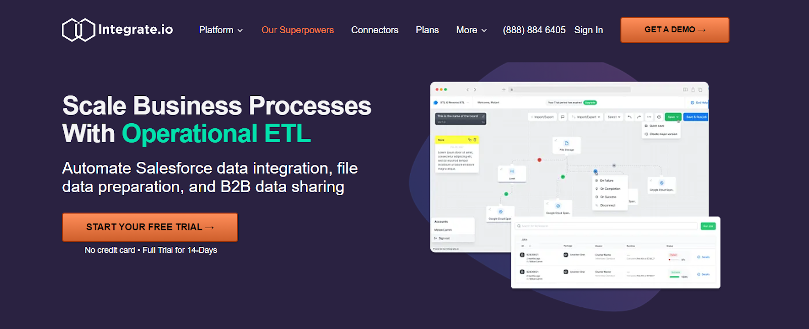 Integrate.io is a cloud-based data integration platform that helps your business automate data consolidation, processing, and preparation for various purposes, primarily analytics and BI. It offers a no-code/low-code environment, making it easier for you to work with data pipelines. Moreover, you can also leverage its data replication feature, which allows you to identify and capture changes from the source file and replicate them in the destination system.