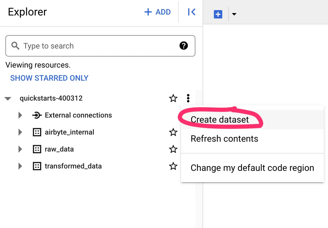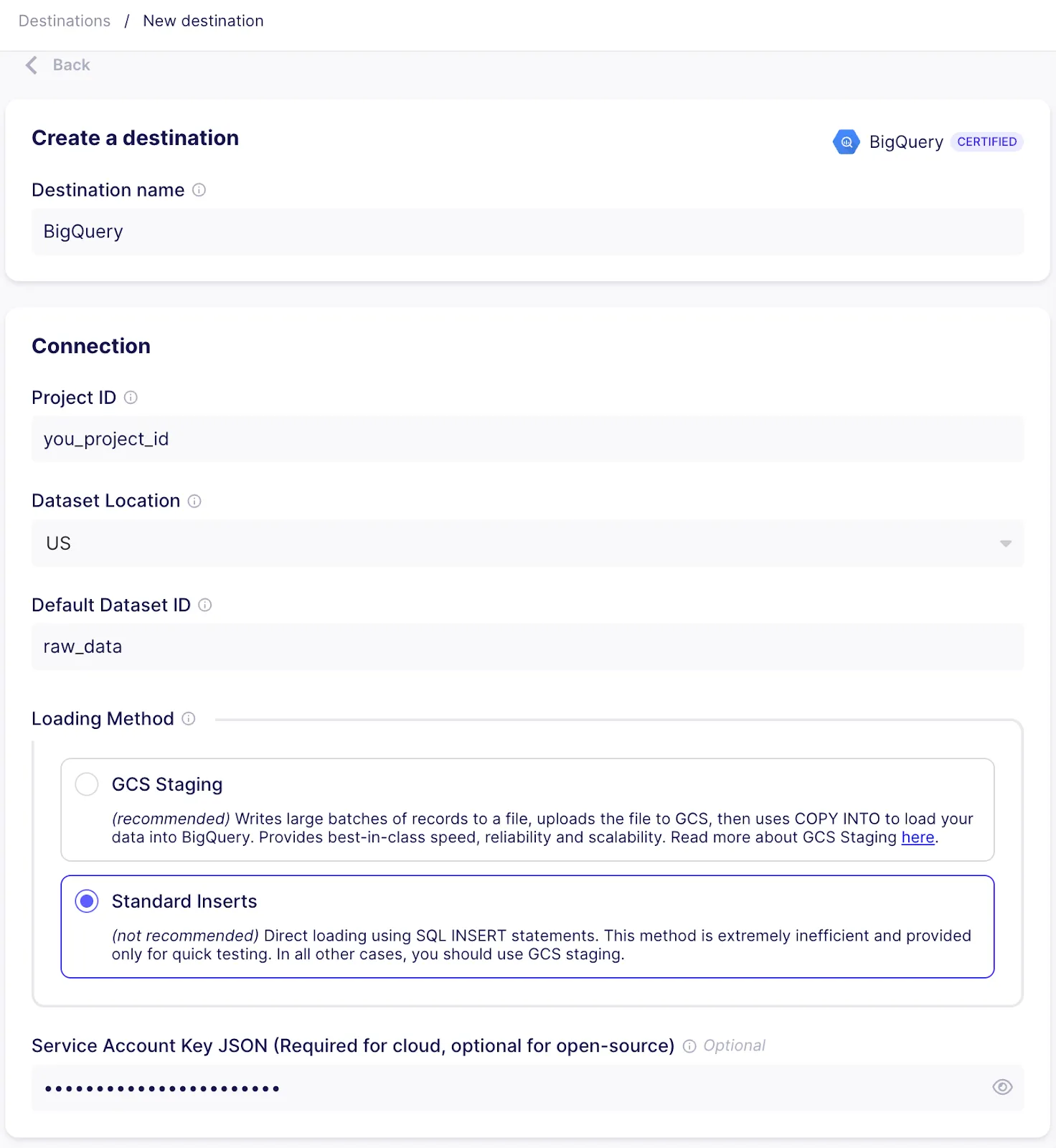 <span class="text-style-code">dataset_id</span>: The name of the BigQuery dataset where Airbyte will load data. In this case, enter “raw_data”.
