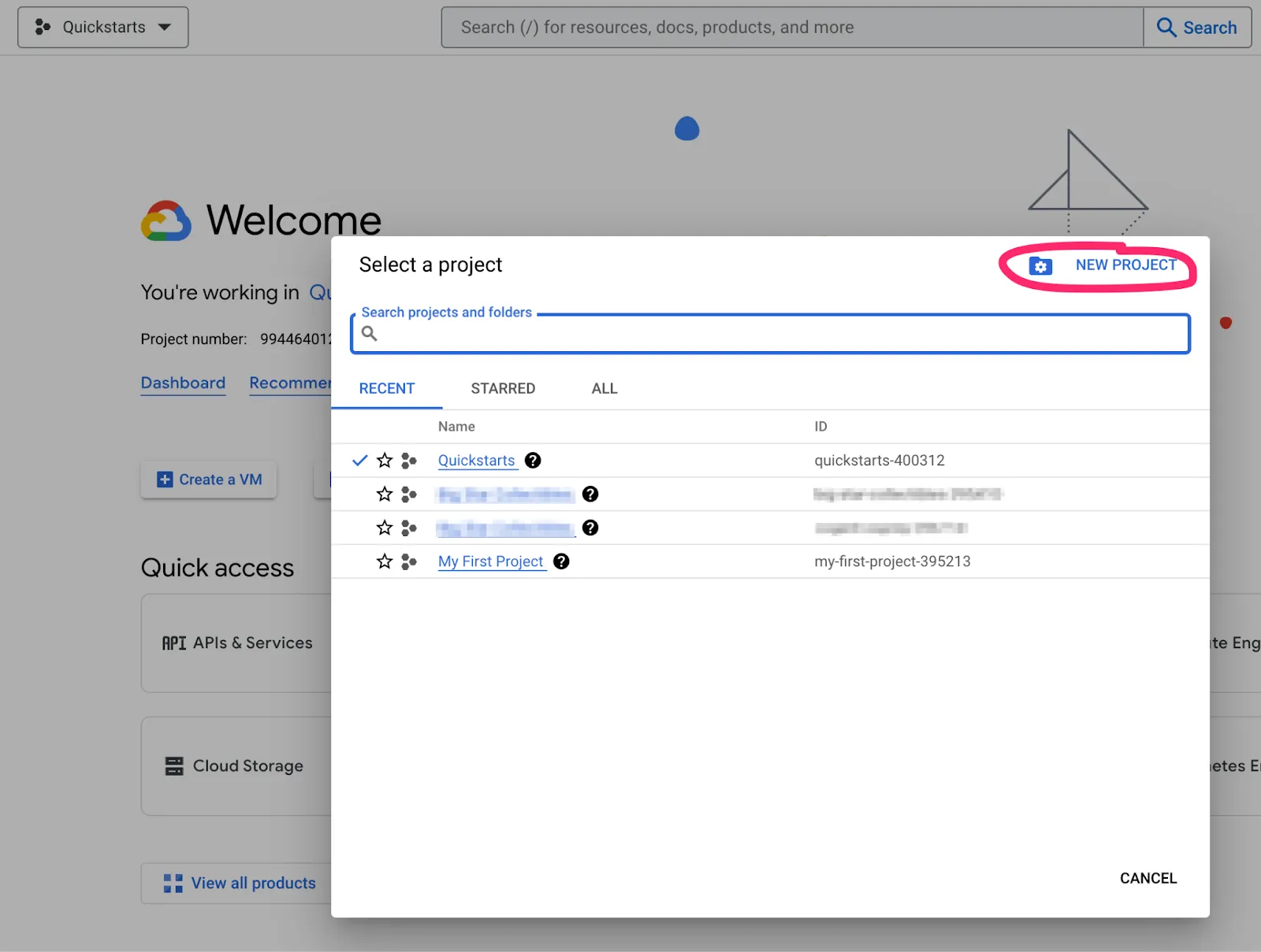 If you don't have a Google Cloud project yet, you'll need to create one.