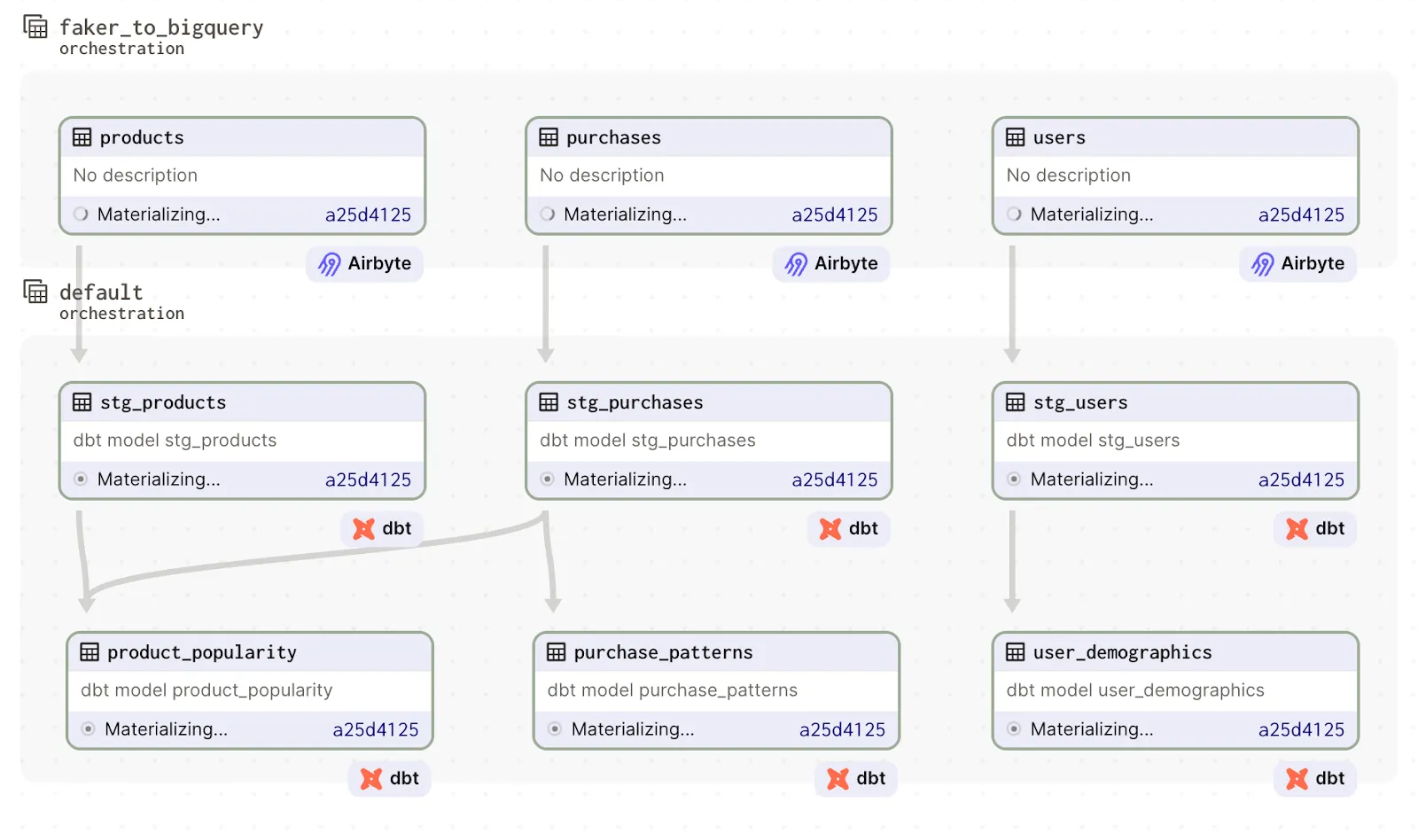 First, the Airbyte sync will extract data from the Faker source and load it into BigQuery.