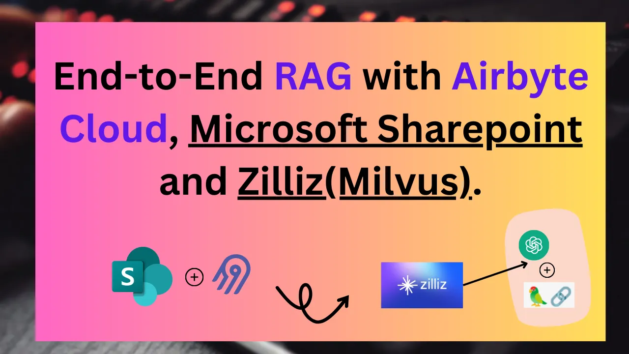 Learn how to build an end-to-end RAG pipeline, extracting data from Microsoft Sharepoint using Airbyte Cloud, loading it on Milvus (Zilliz), and then using LangChain to perform RAG on the stored data.