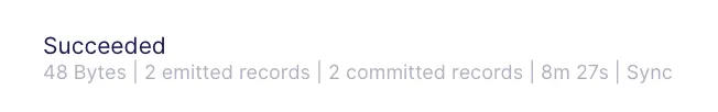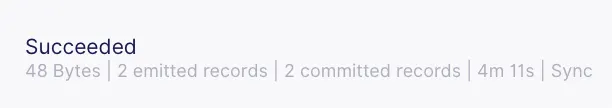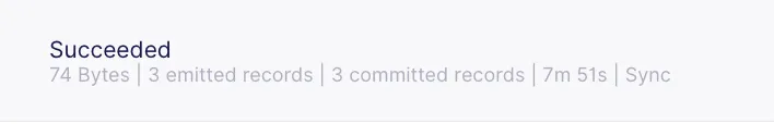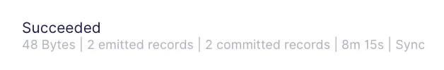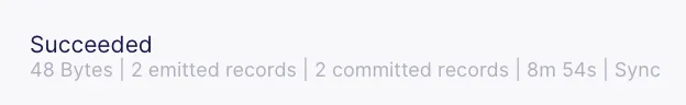 Execute a Sync Now in the connection page, and wait for the sync to complete. Once it is complete, you should see that two records have been emitted, as shown below.