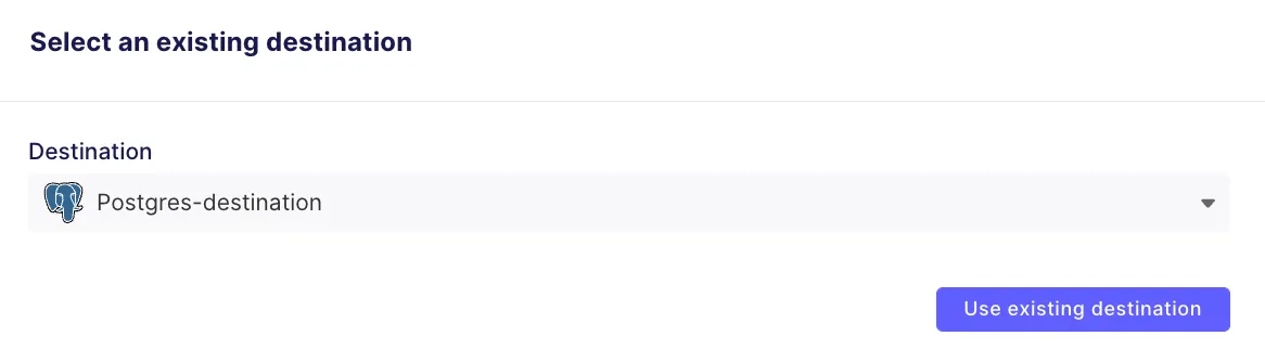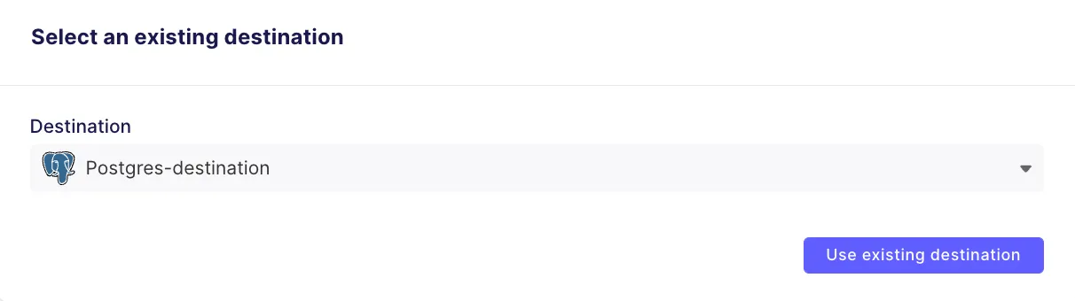 And select Postgres-destination, which you previously defined, as the destination for this connection.