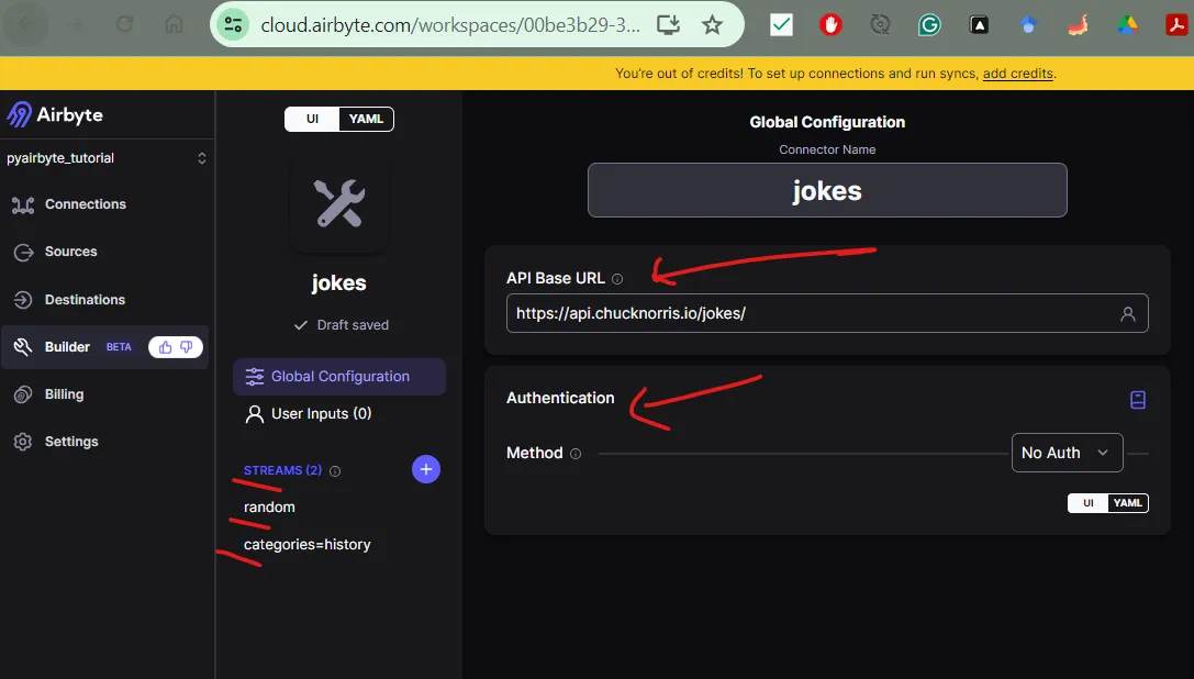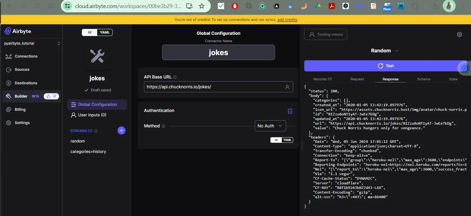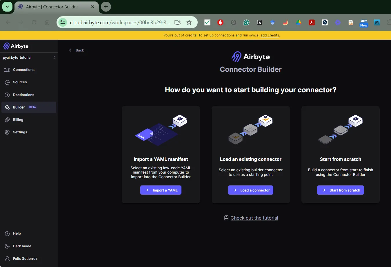 To define our custom connector, we will utilize the platform provided by Airbyte for this purpose, known as the Connector Builder in Airbyte Cloud.