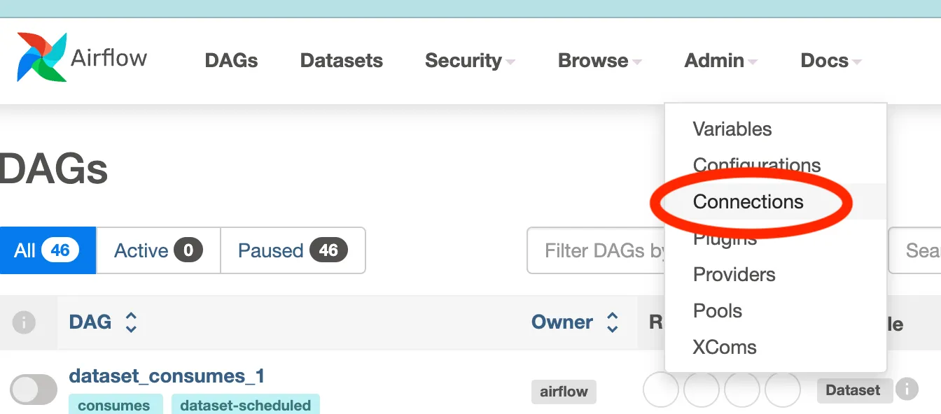 Now that the relevant Airflow connections are defined, they can be used in an Airflow DAG.