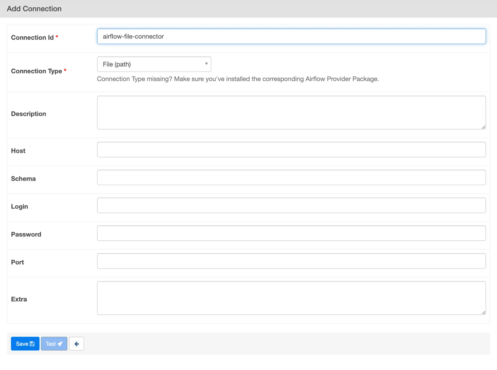 In order to demonstrate how Airflow can execute additional tasks that depend on the completion of an Airbyte synchronization, we will also define an Airflow connection that will be used for accessing and modifying files on the local filesystem.