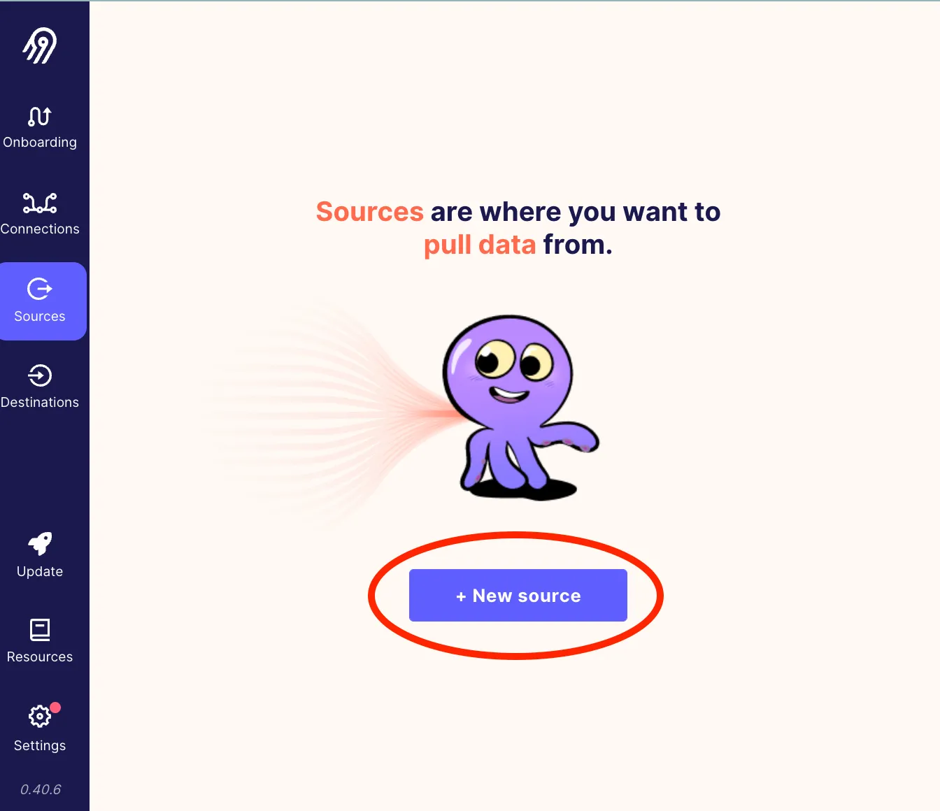 ℹ️ If you already have some connectors defined, then + New source may appear in the top right corner of the window.
