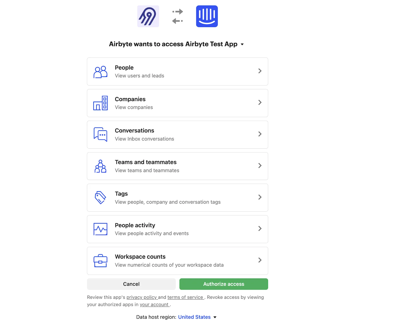 Once signed-in, you will be prompted to authorize Airbyte.