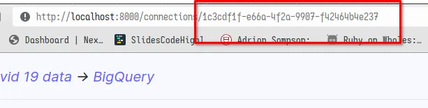 Once you have setup the connection, you need to save the connection ID from the URL to later use it integrate with Airflow on your command line when running the setup.sh command.
