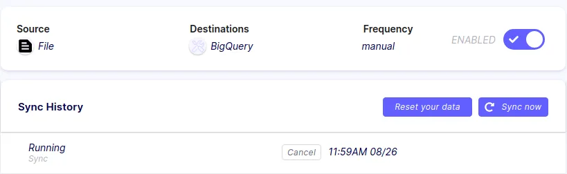 Airbyte is an open-source data integration tool. With Airbyte, you can set up a data pipeline in minutes thanks to its extensive collection of pre-built connectors. Airbyte can replicate data from applications, APIs, and databases into data warehouses and data lakes. Airbyte offers a self-hosted option with Docker Compose that you can run locally. In this modern data stack example, Airbyte is used to replicate data from a CSV file to BigQuery.