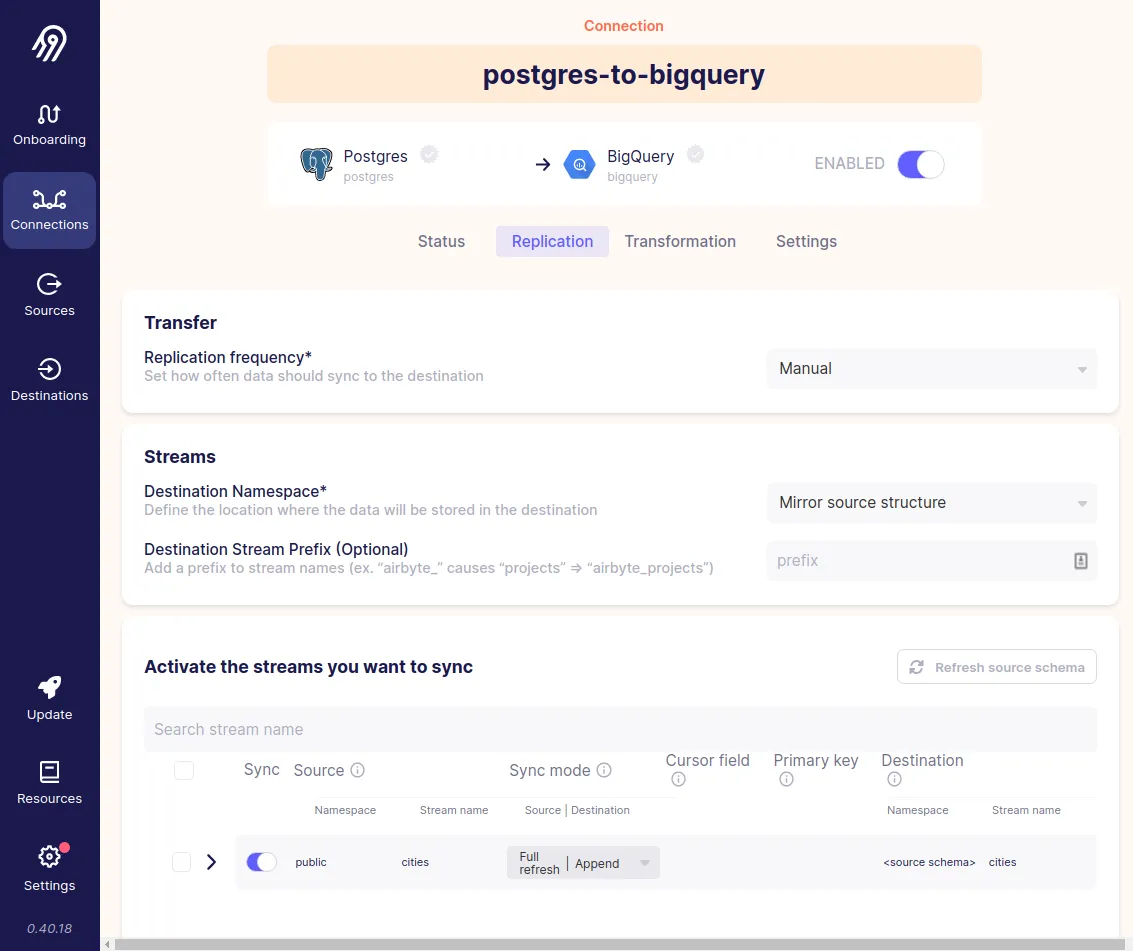 Since we announced the Octavia CLI in April this year, weβve added support for extra features and have seen hundreds of open-source Airbyte users use it successfully in production. In this tutorial, you will learn how to use Octavia CLI to configure Airbyte resources to move data between Postgres and BigQuery. More precisely, you will learn how to: